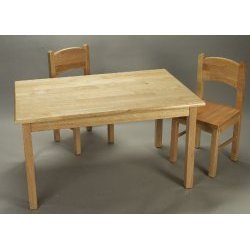 Whether it's used for playing house, tea party, or just having a snack, your child will find extensive use for this solid wood dining set! This children's table and chairs set includes three pieces, all quality crafted from solid hardwood. Due to its high quality craftsmanship, this kids table and chair set is designed to become a family treasure for generations! Choose from three handsome wood finishes, which include Honey, Natural, and White. .